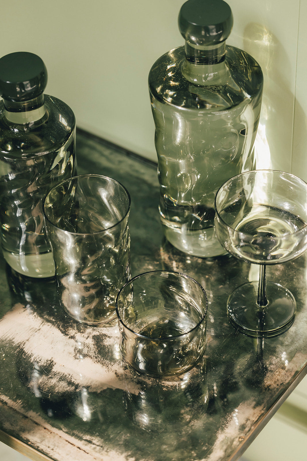 Swirl draait om zachte, vloeiende lijnen die prettig in de hand liggen. De collectie bevat flessen in twee maten en introduceert primeurs zoals een longdrinkglas en een coupeglas — ontworpen niet alleen voor toosten, maar om elk moment, zelfs een eenvoudig glas water, te verheffen.